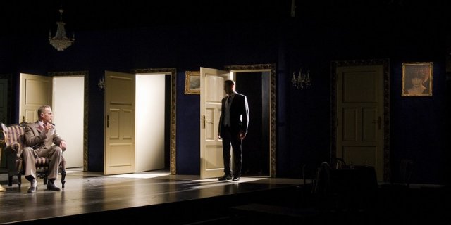 regény elolvasásához, de adaptációnak felszínes és leegyszerűsítő. Az előadás is feltűnően enervált, lélektelen volt, persze ez részben betudható a főpróba izgalmának, de főleg a színház igazgatóváltása körüli botrányoknak. A létbizonytalanság árka fölött kötélen táncolva igen nehéz lehet mesterit alkotni. Ennek megfelelően a rutinos, tapasztalt színészek tolják az előadás szekerét, míg a fiatalokat sajnos szinte észre sem venni. Igen múlékony Schruff Milán Hans Castorpja, de Száraz Dénes Joachimja is csupán az egyik jelenet orvosi vizsgálata miatt kelt feltűnést: izmos, kisportolt felsőteste láttán föl is sikkantott néhány ifjú hölgynéző. Hirtling István Behrens doktorja fakó, fád. Almási Sándor Settembrinije túl sima, túl puha. Nemes Wanda Mme Chauchat-ja tényleg olyan tünékeny, hogy szinte “átlátni rajta”, csupa lebbenő fátyol, leheletnyi finom parfüm, suhanó schlafrock. Szinte csak Castorp képzeletében él. Élesen kopog bele a seszínű enteriőrbe Galkó Balázs önveszélyes késmutatványa. Derzsi Leninnek maszkírozott fasiszta terroristája (Leo Naphta), hatásos monológjával, majd annak drámai végkifejletével az előadás első igazi színházi pillanata, hogy aztán Gáspár Sándor élettel teli, bivalyerős, ám megbomló elméjével éppen így drámai Peeperkornjának megjelenésével egyszerre megemelkedjen a színpad. Gáspár a rendelkezésére álló néhány jelenetben egész egyszerűen vállára kapja az előadást és elviszi – a néző pedig boldogan tapsol a végén.
