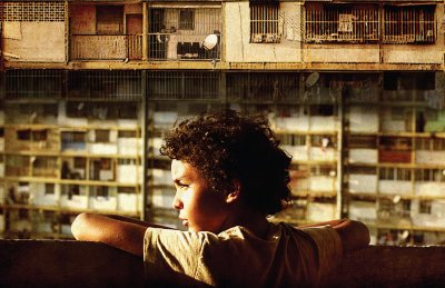 plafonig; hogy amikor a foszló vakolatú, nyomorúságos lakásban, ahol még tévé sincs (a szappanoperák hazájában vagyunk!), a földön játszó gyerekeknek még az arcizmuk sem rezdül, amikor kintről lövések zaja hallatszik, legfeljebb annyit szólnak, hogy: Ne állj fel, már megint felénk lőnek! Nem a hírhedt favellákban vagyunk, ez egy rendes(nek épült) lakótelep, még lift is van, igaz, víz csak néha. A falakon graffitik, például Da Vinci Utolsó vacsorájának jellemző parafrázisa, melyen Jézus ül a fő helyen, osztja vérét és húsát, az apostolok azonban Che Guevara, Castro, Marx, Engels, Lenin, Hugo Chavez, Evo Morales és hasonlók. Rádióból hírek szólnak: az elnöki palota előtt venezuelaiak tömegei borotválják kopaszra a hajukat, így támogatva a rák ellen küzdő elnöküket (Chavezt).