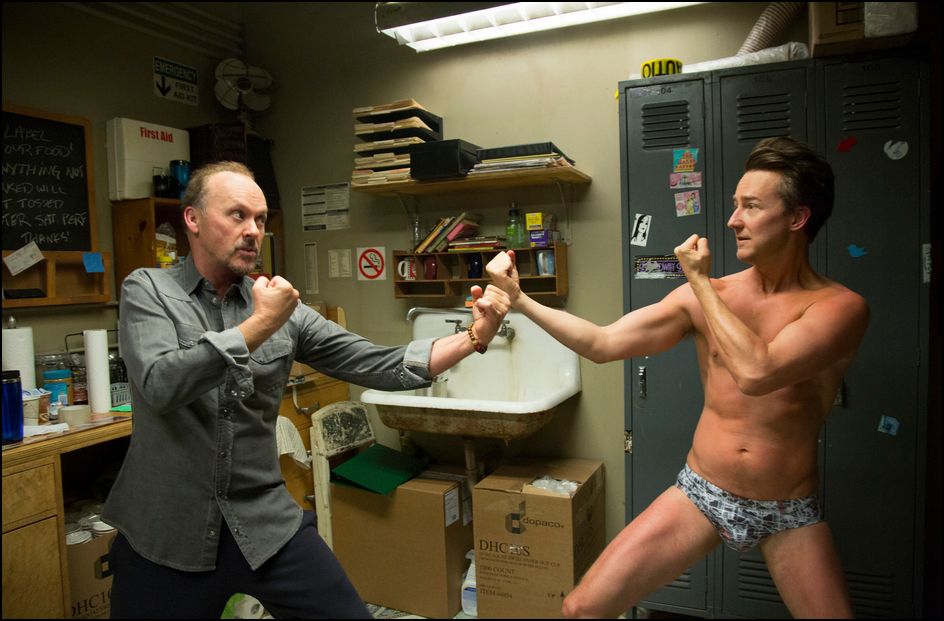 Ugyanez a Birdman-ben: a főhős kioson bagózni, kizárja magát és egy szál gatyában kénytelen végigcaplatni New York utcáin, majd fellépni és elérni a célját. Egy bagatell, hétköznapi akadály, humorral, öniróniával feloldva. Ugyanaz a hatás, nagyon más eszközök.