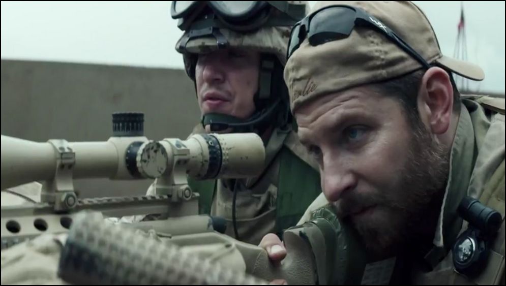 Persze, az öreg barázdált arcú, köztudomásúlag republikánus filmes legenda sem ment a szomszédba némi pátoszért, a fináléban adta is, ahogy a csövön kifér, de végül is visszafogottan mesélte el Kyle sztoriját. Az “inkriminált” gyerek-, és anyagyilkosságot persze, nem hagyja ki, sőt, azzal indítja a filmet, de aztán ezt inkább arra használja, hogy Kyle emberi arcát domborítsa ki vele (melynek eredménye a film közepén egy másik, kissé már giccses kisgyerekes-RPG-s jelenet, mely viszont már túlzott, idealizált tulajdonságokkal ruházza fel a címszereplőt). Sajnos, Kyle jellemfejlődése nem igazán rajzolódik ki a filmben, hiszen a kemény, hazafias, hívő, republikánus családban felnőtt vidéki suttyóból különösebb átmenet nélkül lesz egy nem igazán ügyes, ráadásul túlkoros önkéntes, majd újabb ugrással mesteri mesterlövész, a “Legenda”, hogy aztán egy emberi roncsként térjen haza, ahol először a családja idegeire megy, majd egy újabb éles snittel, mintaszerű családapaként érjen fatális véget az élete… Bradley Cooper, Kyle megformálója valamit megérezhetett ebből az erősen szakadozott ívű életpályából, hiszen ugyanazzal az arccal játssza végig a címszereplő egész életét – így biztosan eltalálja a karaktert, bármi is történjen vele.