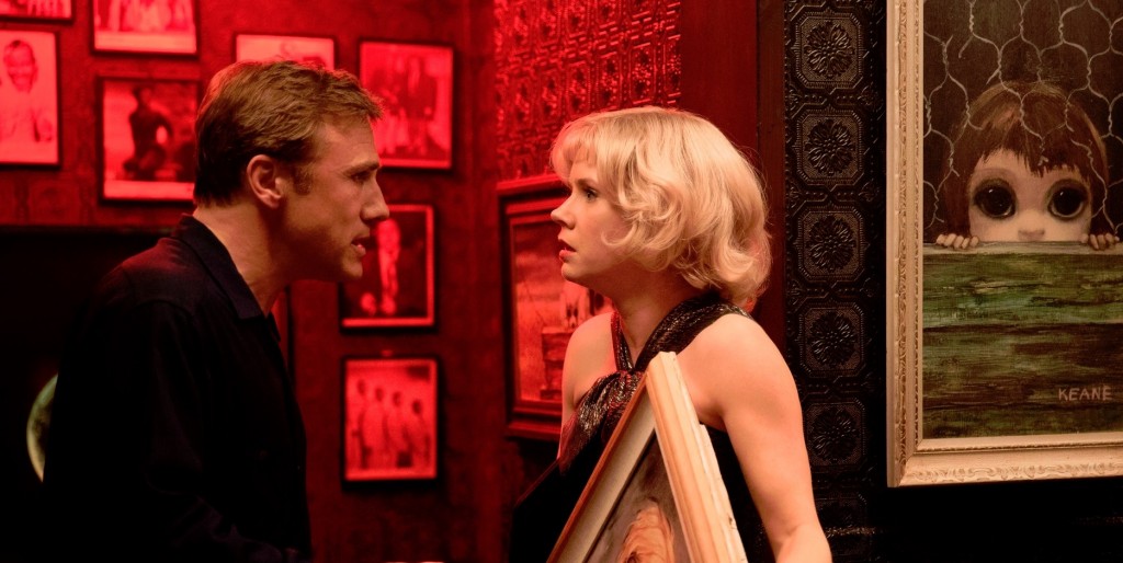 Nos, valahol Burton is ezt boncolgatja Keane-életrajzában, mely valójában inkább a most már egyértelműen Margaret Keane nevéhez köthető “iparág” keletkezéstörténete, inkluzíve egy tehetséges nő kontra hímsoviniszta társadalom asszójának pozitív kicsengésű végkifejletével. Ennek megfelelően, a film képi világát (operatőr Bruno Delbonnel) is elsősorban Burton az ötvenes évek Amerikájáról alkotott harsány színekben tobzódó, enyhén pszichedelikus látomása határozza meg, melyhez képest jelentenek valódi furcsaságot Margaret valóban különös hangulatú festményei (melyek – szintén jellemző módon – Burton korábbi sötét, borongós hangulatú, tragikusan romantikus filmjeit idézik vissza…).
