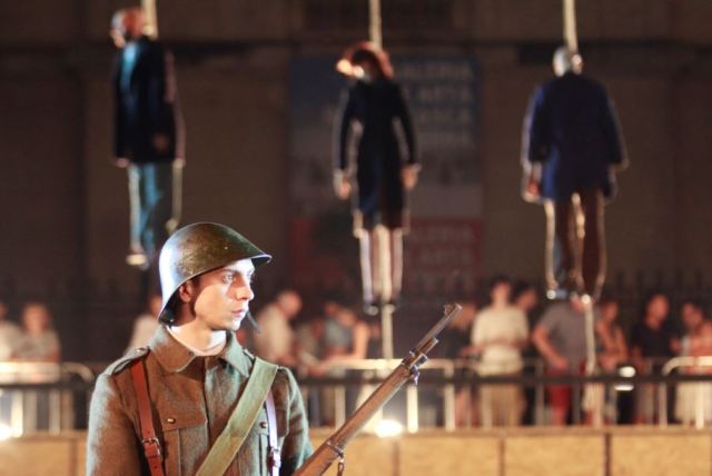A Bánom is én, ha elítél az utókor így egyszerre esszéfilm, történelmi parabola és szatíra. Ne várjunk olyan íves, gazdagon megfestett tablót, mint amilyen a remek Aferim!, Radu Jude megelőző filmje volt: a forma más, de az összegző, komplexitásra törekvő szemlélet ugyanaz. Ha emlékszünk még Jancsó életművének nagy részét kitevő filmekre, melyek a magyar történelem egy-egy sorsfordító, nagy eseményét, vagy éppen annak egy részletét vagy hátterét világították meg sajátos formanyelvvel, vagy emlékszünk még Kardos Petőfi ’73 című filmjére, Gazdag Gyula Bástyasétány ’74-ére, Jeles Álombrigádjára, akkor nagyjából képben vagyunk e filmet illetően is. Képben, tehát formában. Nagyjából. A történet szerint Mariana (Ioana Iacob), a fiatal, ambiciózus rendezőnő a 123 000 zsidó halálát okozó odesszai pogromra emlékező, nagyszabású utcai performanszra készül. Koncepciója szerint az előadás utalna az összes fellelhető történelmi tényre, adalékra, de a zsidóüldözést tagadó különféle téveszmékre is. A cél érdekében a rendező kizárólag amatőr szereplőkkel (akiket a filmben többségében neves, profi román színészek alakítanak) képzeli el az előadást, ami viszont értelemszerűen egy csomó ügyetlenkedéssel, komikus bénázással jár. Az ifjú, ám az előadás témáját illetően felkészült rendezőnő a rendezés technikai oldalával elszántan küzd, sőt, az időközben megérkező “fontos úr” “kéréseit” is ügyesen kezeli. Azt azonban még ő sem látja előre, hogy az előadás fogadtatása milyen lesz…