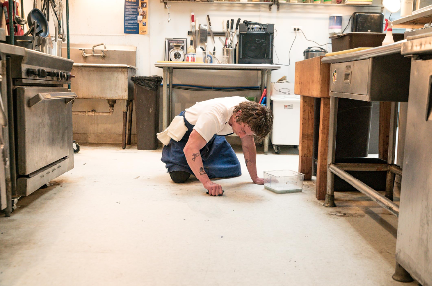 Ugyanis A mackó (pontosabb azért az eredeti angol cím, A medve, mely valójában a fő karakter nevéből, a Berzattóból jön) ilyen hely. Bár -főleg a második évad második felében- látunk kreatív fine dining ételcsodákat, a cselekmény túlnyomó része nem gasztrotechnológiai oktatófilm, sokkal inkább a különböző karakterek egymással vívott, állandó csörtéi lendítik előre a történetet. A konyha igen stresszes munkahely, ennek megfelelően parázs indulatok robbanak ki rendre itt-ott, hol aprócseprő ügyekből (hol a késem?, stb.), hol mélyebb érzelmi gubancokból (eltérő szakmai felfogás, elvarratlan rokoni, baráti konfliktusok, a szerelmi magánélet és a munkahelyi karrier összeegyeztetési nehézségei, stb.) esnek egymásnak a sorozat szereplői, sokszor olyan modorban, amit még a hírhedt káromkodó szakács, Gordon Ramsay sem engedne magának. És itt van igazából a sorozat sikerét szimbolizáló kutya elásva: Ahogy átlendülünk az első évad első részének őrült, kaotikus zűrvazarán, egyszerre kezdjük el szeretni az összes karaktert, kivétel nélkül. Hiába ordítanak egymással pergő négybetűs szavakkal, mosolygunk a sok őrültön, akiket élmény nézni, hogyan húznak végül is mind, együtt ugyanabba az irányba. Christopher Storer sorozatának éppen ez a legnagyobb erénye, a hihetetlenül pontos karakterépítés. (Komoly színészi teljesítmények a vezető karakterektől a mellékfigurákig, kevéssé ismert színészektől a kisebb mellékszerepeket vállaló komoly sztárokig és valódi szakácssztárokig.) Olyan figurákat teremt, akiknek jellemvonásait akár a saját, közeli munkatársaimon is tapasztalhatom, minden nap – miközben baromira nem étteremben dolgozom. Ismerős konfliktusok, ismerős reakciók, ismerős arcok és fazonok, akik és amik által olyan történetnek leszünk részesei, mely arról szól, hogy minden akadály ellenére igenis érdemes jó dolgokért küzdeni, még akkor is, ha esetleg reménytelennek látszik ez a küzdelem. A filmbeli olasz szendvicsezőből fine dining étteremmé avanzsáló vendéglátóipari egység története mindemellett akár itt Pesten, a hat-, hét, vagy nyolckerben is történhetne, a lényeges dolgokban Chicago nincs messze innen. Ugyanaz a bürokrácia, ugyanazok a nehézségek, s majdnem ugyanazok a személyi feltételek. Chicagóban sem könnyebb, mint nálunk.